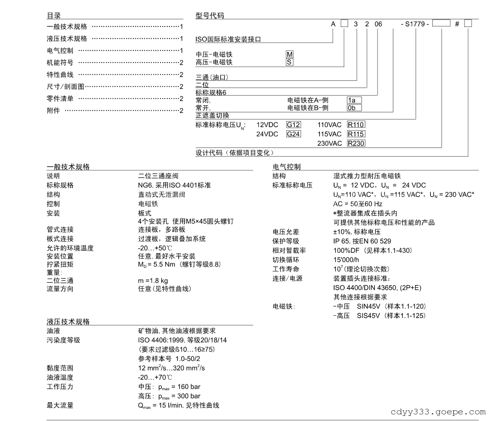 详细信息| 询价留言品牌:座阀式电磁阀 型号:AS32060b-G24 加工定制:否 材质:铸铁 连接形式:快装 类型:三通式 适用介质:油品 压力环境:常压 工作温度:常温 流动方向:换向 压力环境:常压 工作温度:常温 我司供应的瑞士wandfluh万福乐座阀式电磁阀AS32060B正遮盖切换的万福乐座阀,可被用于任何静态 或动态工况下,要求无泄漏的场合。因其 切换过程都受控,所以正遮盖切换的座阀可作 为二位二通插装阀的导阀使用。在蓄能器控制. 回路中,因为泄漏会导致蓄能器的快速泄油,而 带有正遮盖切换的座阀能有效防止在切过程中 时的泄漏。Wandfluh万福乐无泄漏电磁阀