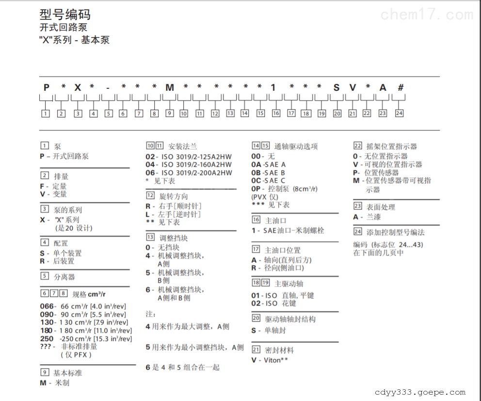 EATON伊顿VICKERS威格士变量柱塞泵PVXS系列常规型号如下:
