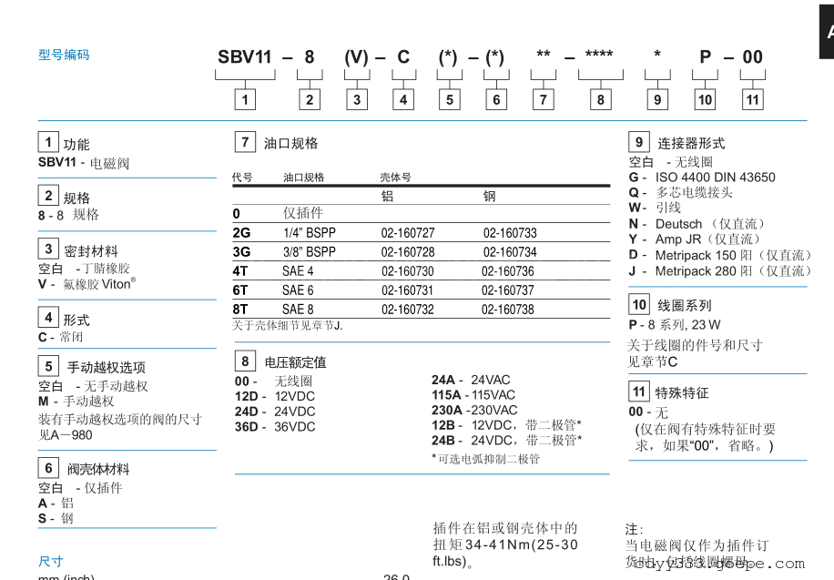 威格士SBV11双向电磁阀双向,常闭电磁阀60 L/min (15 USgpm). 350 bar(5000 psi)
