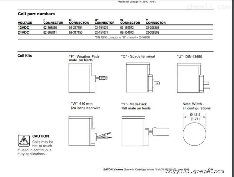 伊顿螺纹插装电磁阀线圈MCSCJ系列常规型号如下:
