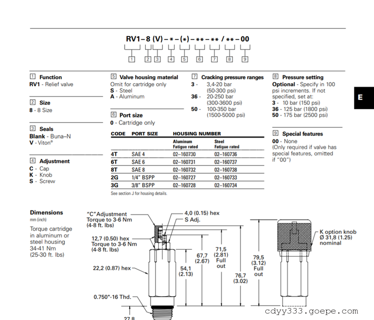 伊顿威格士插装溢流阀RV1常规型号如下: