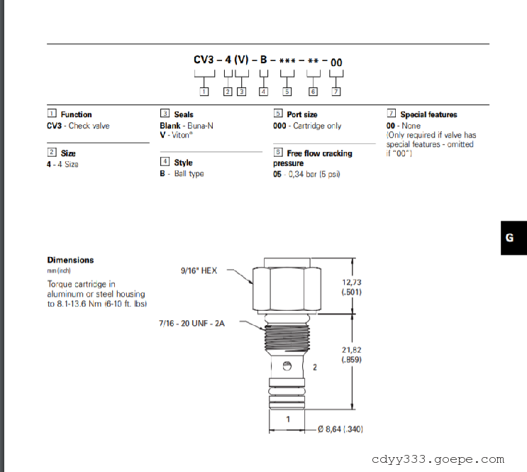 伊顿威格士螺纹插装式单向阀CV系列常规型号如下: