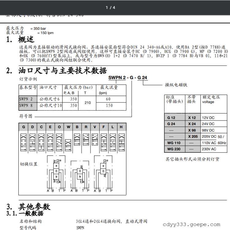 SW,SWP与NSWP型滑阀式换向阀概述: