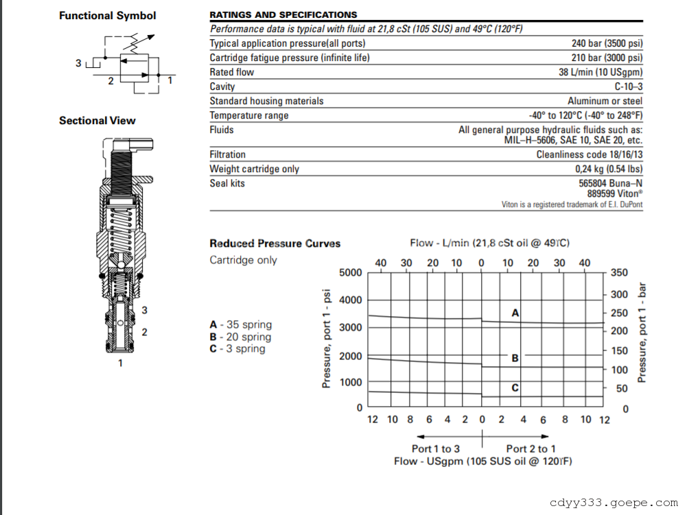 该阀通常是打开的,允许从端口2到端口1的流量。必须对端口3进行排气。一旦在端口1达到压力设置,阀芯就会移动以限制端口2的入口流量。这将调节端口1的压力。如果端口1的压力超过阀门的预定设置,则阀芯将进一步移动并释放端口3压力过大