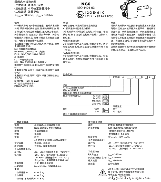 电磁线圈符合94/9/EC(ATEX)执行标准.适用于爆炸危险区域。