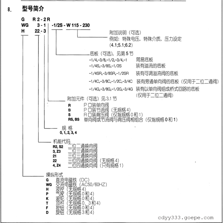 操纵方式:电磁操纵、压力操纵、机械操纵或手动操纵